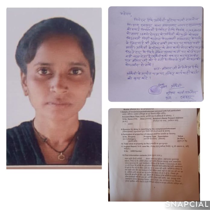 अखण्ड नगर/सुल्तानपुर मामला ग्राम पंचायत दसऊ पुर थाना अखण्ड नगर तहसील कादीपुर जनपद सुल्तानपुर का है। गुमशुदा का नाम कोमल पुत्री पिता राम नैन दिनांक 11/2/2026 को घर से निकली स्कूल के लिए विद्यावती महाविद्यालय पटेल नगर वेहराभारी अखण्ड नगर सुल्तानपुर मे प्रेटिकल देने के लिए घर से बता कर निकली थी। रास्ते से गायब हो गई काफी देर तक घर वाले इन्तजार किऐ लेकिन घर वापस नही लौटने के बाद स्कूल मे देखने के लिए परिवार वाले गए तो स्कूल बंद पड़ा था।परिवार के लोग खोज बीन करने लगे लेकिन कही उसका पता नही चला घर वालो का रो रो कर हुआ बुरा हाल थाना अखण्ड नगर मे शिकायत दर्ज कराई है जिन किसी भाई बहन को दिखाई देती है। अखण्ड नगर थाने पर सूचित करे।