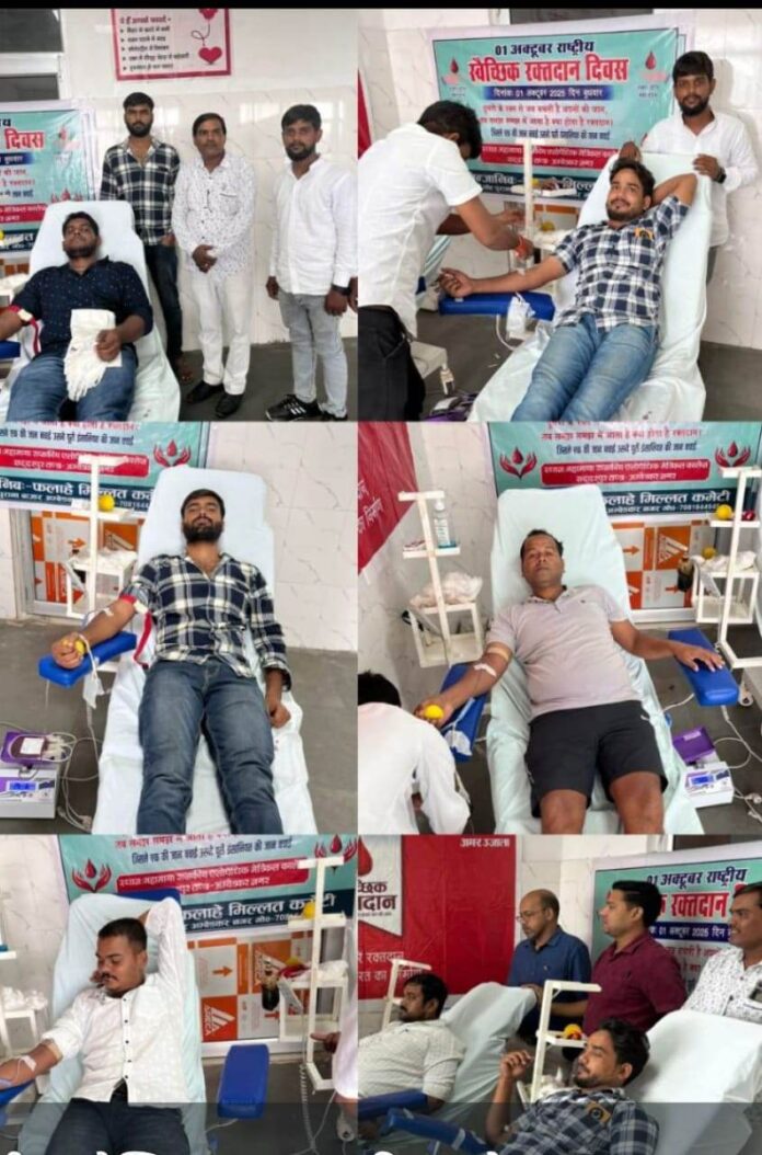 *अंबेडकर नगर*। अंबेडकर नगर जनपद के जहांगीरगंज की सामाजिक संस्था फलाहे मिल्लत कमेटी नरियांव पुरानी बाजार द्वारा महामाया राजकीय एलोपैथिक मेडिकल कालेज सद्दरपुर अम्बेडकरनगर के ब्लड बैंक में एक भव्य रक्तदान शिविर का आयोजन किया गया। शिविर में युवाओं, ने बढ़-चढ़कर हिस्सा लिया और मानवता की सेवा का संदेश दिया। संस्था के अध्यक्ष मोहम्मद हाशिम ने बताया कि रक्तदान महादान है और इससे किसी ज़रूरतमंद की जान बचाई जा सकती है। शिविर में चिकित्सकों की टीम के साथ ब्लड काउंसलर दीपक नाग मौजूद रहे, जिन्होंने रक्तदाताओं की जांच कर सुरक्षित रूप से रक्त संग्रह किया। उक्त शिविर में आदित्य सिंह, पवन सिंह, मोहम्मद जावेद, संतोष, प्रभात सैनी सहित अन्य लोगों ने अपने रक्त को दान किया !
