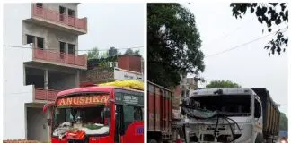 बस और ट्रक की आमने सामने टक्कर जिसमे बड़ा हादसा होने...