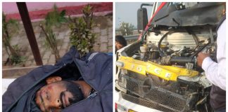 टायर फटने से एंबुलेंस ट्रक में घुसने से युवक की मौत...