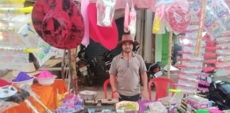 होली के त्योहार पर लाल गुलाबी रंग मे रंगा अखण्डनगर चौक...