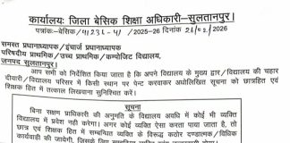 स्कूल परिसरों में अनाधिकृत प्रवेश पर सख्ती,बीएसए सुलतानपुर का सख्त आदेश...