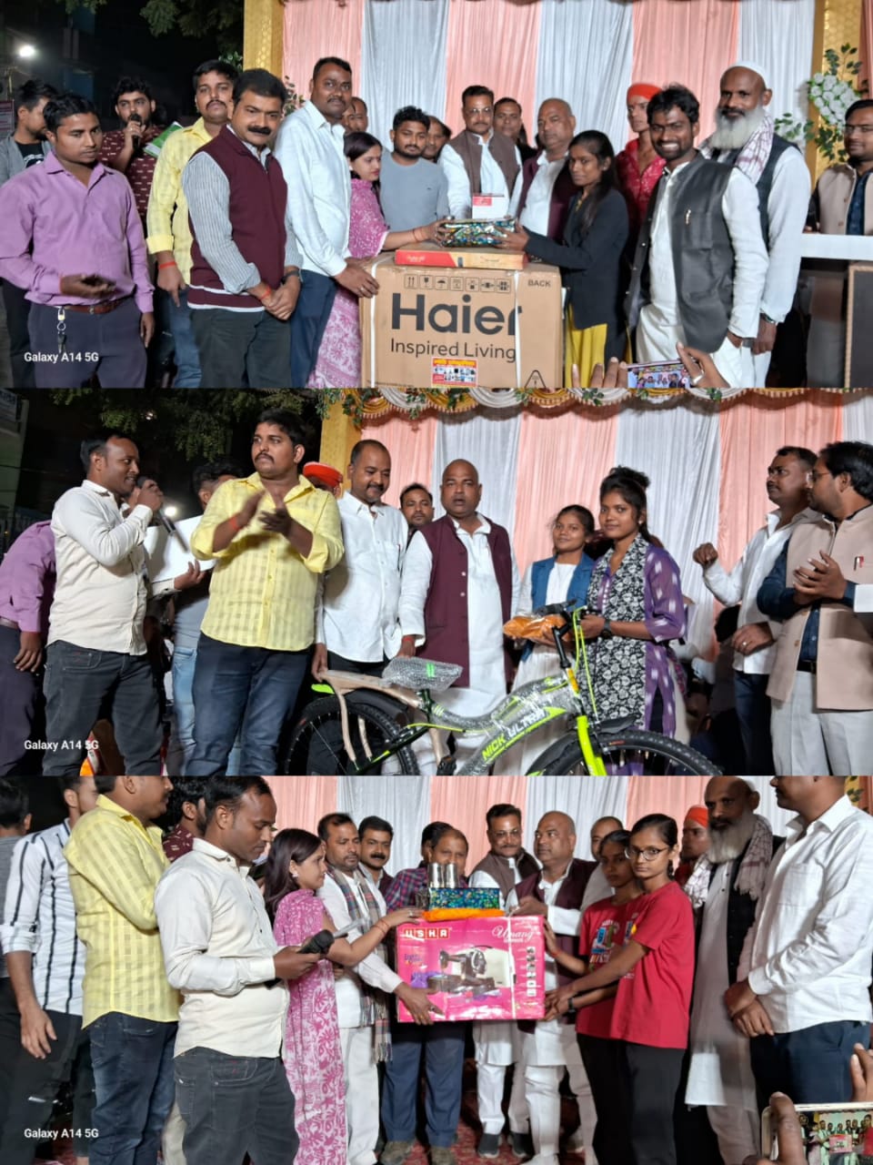 फूलपुर। गुरुवार को कस्बा स्थित नागा बाबा सरोवर ,पार्क में एकादशी के पावन पर्व पर श्री बाबा परमहंस सेवा समिति व नगर पंचायत फूलपुर के तत्वाधान में रंगोली प्रतियोगिता आयोजित किया गया, जिसमे स्थानीय सहित अन्य जिले के प्रतिभागी बच्चियों ने भी भाग लिया, रंग बिरंगी, एकता और अखंडता, बेटी पढ़ाओ बेटी बचाओ, भारत की विकास यात्रा, सभ्यता संस्कृति को लेकर अनेकों रंगोली बनाई प्रतियोगित में 66 टीमों द्वारा 66 से अधिक रंगोली बनाई गई। बनाई गई रंगोली का अवलोकन लालगंज सांसद श्रीमती संगीता आजाद, अजय नरेश यादव, नगर पंचायत अध्यक्ष रामाशीष बरनवाल, उपजिलाधिकारी श्रीश्याम प्रताप सिंह ने किया जिसके आधार पर आयोजन समिति के निर्णायक मंडल द्वारा रंगोली प्रतियोगिता में बच्चियों को पुरस्कृत किया गया। जिसमें प्रथम पुरस्कार वाशिंग मशीन नेहा गुप्ता, द्रुतीय पुरस्कार सिलाई मशीन प्रीति चौहान,तृतीय पुरस्कार सायकिल प्रीति प्रजापति, चौथा पुरस्कार कूलर उजाला को दिया गया अन्य में सभी को स्वंत्वना पुरस्कृत दिया गया।इस मौके पर खाटू श्यामजी जी के जन्मोत्सव मनाते हुए तुलसी पूजन भी किया साथ ही देव दीपावाली पर घाटों को दीपक से सजाया गया। इस मौके पर आयोजन समिति के अध्यक्ष मनीष प्रजापति, अजय सेठ, सत्यम,विनोद, आकाश सोनी, चंदन,मनोज गुप्ता, डा दिनेश, देवेश ,कैलाश चंद्रिका प्रताप यादव, नसीम साज, रफीक फूलपुरी, श्रवण गुप्ता, भानू प्रताप चौहान, अजय गुप्ता, सितला अग्रहरी, विजय प्रकाश जायसवाल, अशोक जायसवाल, संजय सेठ, प्रदीप मौर्य, मनीष रूंगटा,लालबहादुर यादव सहित आदि लोग रहे।