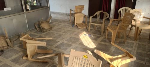 आजमगढ़़निजामाबादद थाना क्षेत्र के अल्लीपुर ग्राम सभा में सरकारी जमीन का कुछ विवाद था जिसमें दोनों तरफ से भाजपा नेताओं द्वारा पैरवी हो रही थी,उसी प्रकरण में आज दिन में तहसीलदार निजामाबाद,उप जिला अधिकारी निजामाबाद को मीटिंग हॉल में भाजपा नेता निशी कांत राय द्वारा बुलाया गया, जिसमें निशिकांत राय ने अपने कुछ समर्थकों सहित मीटिंग हॉल में पहुंचे और तहसीलदार और उप जिला अधिकारी को मीटिंग हॉल में पहुंचते ही अंदर से दरवाजा बंद कर कहां सुनी के बाद मारपीट हुई,मौके पर मौजूद पुलिस ने जबरदस्ती दरवाजा खुलवा कर अधिकारियों को अपने अपने चेंबर में पहुंचाया, मारपीट में तीन लेखपालो को भी चोटे आई है,मीटिंग हॉल की टूटी कुर्सियां काफी कुछ बयां कर रही है,लेखपाल संघ के अध्यक्ष का कहना है कि यह निशिकांत राय द्वारा पहले से सुनियोजित तरीके से हमला किया गया है,यह कृत्य सरकार के पूरे सिस्टम को कटघरे में खड़ा करता है,जब इतने बड़े बड़े अधिकारी अपनी तहसील के चेंबर में सुरक्षित नही हैं तो आम जनता की क्या हाल होगी,इसके खिलाफ हम आर-पार की लड़ाई लड़ेंगे उप जिलाधिकारी निजामाबाद ने कहा कि हम प्रयास कर रहे हैं कि सब कुछ सामान्य हो जाए जो हुआ वह अच्छा नहीं हुआ तहसीलदार ने जाओ बाद में कहा कि जो भी कुछ हुआ है इसकी न्यायिक जांच होनी चाहिए हम अपने मुंह से कुछ नहीं कब आएंगे।