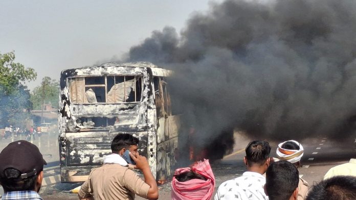 (आजमगढ़) । जयपुर से पश्चिम बंगाल जा रही एक यात्री बस में गुरुवार को पूर्वांचल एक्सप्रेस-वे के माइल स्टोन 188.6 पर सहेला गांव के पास दोपहर लगभग 2:15 अचानक भीषण आग लग गई। देखते ही देखते बस धू-धू कर जलने लगी, जिससे मौके पर अफरा-तफरी मच गई। हालांकि राहत की बात यह रही कि समय रहते सभी यात्रियों को सुरक्षित बाहर निकाल लिया गया और कोई जनहानि नहीं हुई।