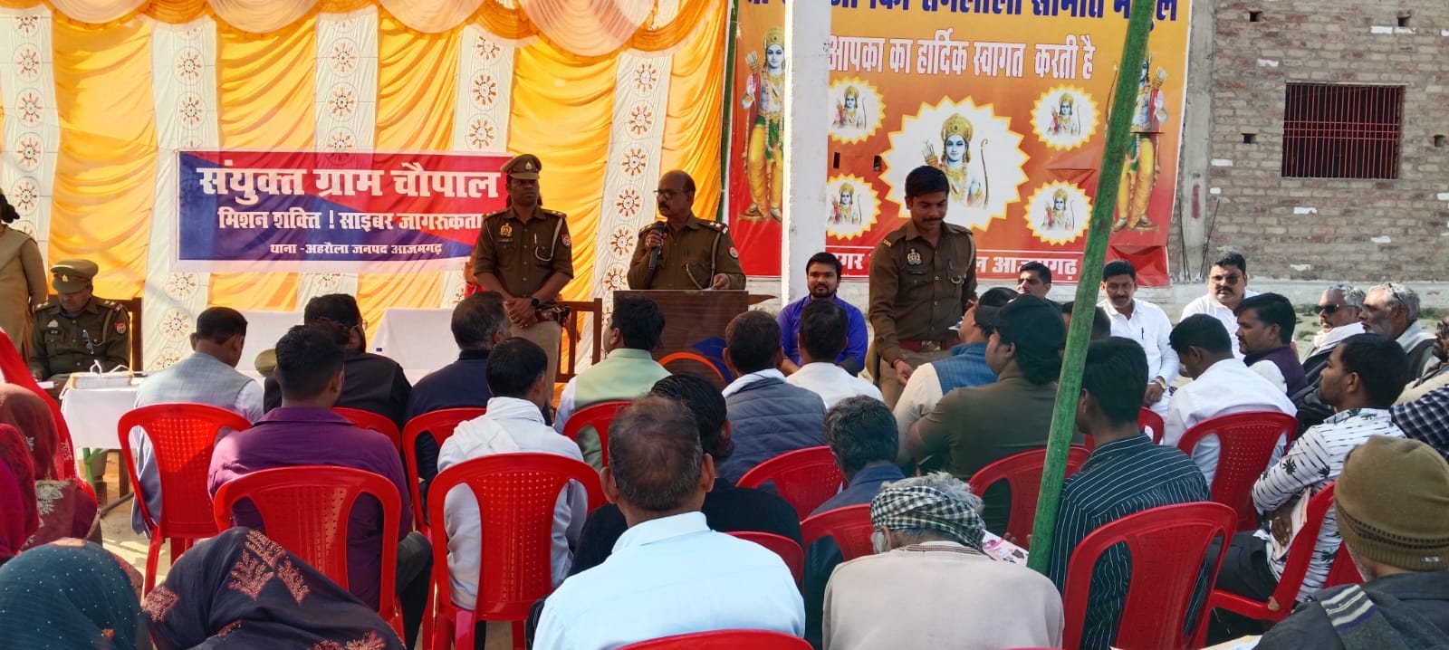अहरौला (आजमगढ़) थाना क्षेत्र के माहुल नगर के रामलीलाज्ञ मैदान में थानाध्यक्ष अहरौला अमित कुमार मिश्र की अध्यक्षता में मंगलवार को मिशन शक्ति और साइबर सुरक्षा के लिए सयुक्त जन चौपाल का आयोजन किया गया। इसमें साइबर फ्राड और महिला संबंधी अपराधों की जानकारी दी गई। अभियान के तहत महिला पुलिस कर्मियों ने विद्यालय और अन्य सार्वजनिक स्थानों में होने वाले महिला अपराधों के प्रति जागरूक किया गया।