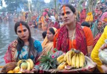 छठ पूजा : डूबते सूर्य को व्रती महिलाओं ने दिया अर्ध्य