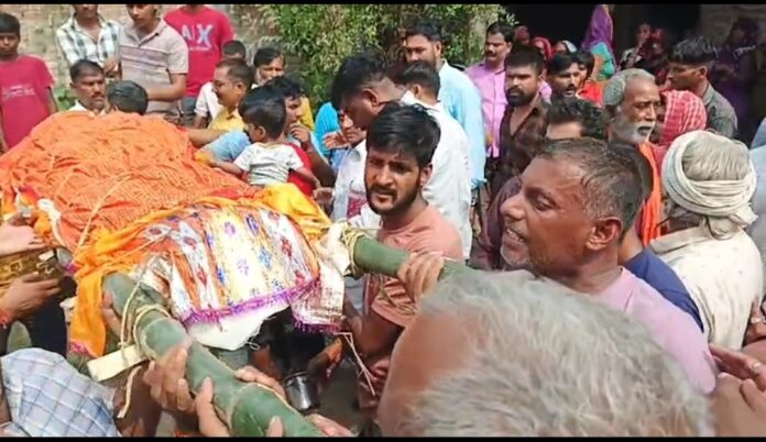 स्थानीय थाना अंतर्गत मंगलवार को पीट पीटकर हुई बुजुर्ग उमाशंकर दूबे की हत्या के मामले में आज वृहस्पतिवार को दोपहर लगभग साढ़े ग्यारह बजे परिजनों द्वारा शव को अंतिम संस्कार के लिए घर से ले जाया गया।