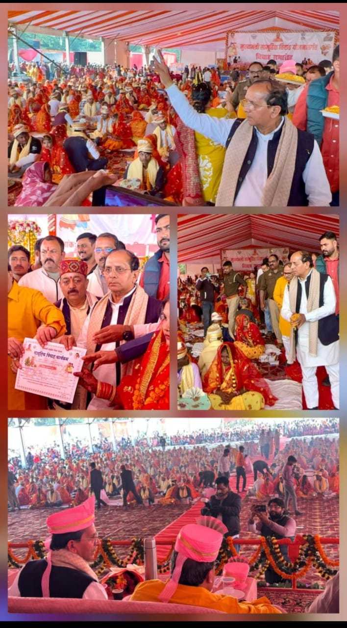 सुल्तानपुर के फरीदीपुर विद्यालय परिसर में में मुख्यमंत्री सामूहिक विवाह योजना के तहत कार्यक्रम का आयोजन हुआ। 75 विद्वानों के वैदिक मंत्रोच्चार के बीच 660 जोड़ों ने सात फेरे लिए। सदर विधायक राजबाबू उपाध्याय व शहर विधायक विनोद सिंह ने गणेश प्रतिमा पर माल्यार्पण व दीपदान कर कार्यक्रम का शुभारंभ किया। विवाह समारोह के लिए भव्य पंडाल बनाया गया। फूलों व रंगीन कपड़ों से उसे सजाया गया। सभी जोड़े सज धज कर मंडप में पहुंचे। 75 यज्ञ वेदियों पर एक-एक विद्वान आचार्य के साथ त वर वधू को बिठाया गया। वर बधू को कोई असुविधा न हो,इसके लिए हर यज्ञ वेदी के पास चार-चार कर्मचारी लगाए गए। पूजा व वैदिक मंत्रों के बीच सभी जोड़ों के फेरे कराए गए। जोड़ो को वस्त्र,चांदी के पायल, बिछिया, वाटर कूलर, कड़ाही, ट्राली बैग, दीवार घड़ी, सीलिंग फैन, प्रेस, डबल बेड चादर, गद्दा तकिया व श्रृंगार का सामान आदि भेंट किया गया।विधायक राजप्रसाद उपाध्याय राजबाबू ने संबोधन में सभी अतिथियों,अधिकारियों,कर्मचारियों और आए अभिभावकों को धन्यवाद दिया। उन्होंने बताया कि मुख्यमंत्री योगी आदित्यनाथ ने सामूहिक विवाह योजना के अंतर्गत प्रति जोड़े एक लाख रुपये की व्यवस्था की है तथा प्रदेश की गरीब कन्याओं का विवाह कराने का लक्ष्य रखा गया है। उन्होंने महिलाओं के सम्मान और सशक्तिकरण पर विशेष बल दिया।