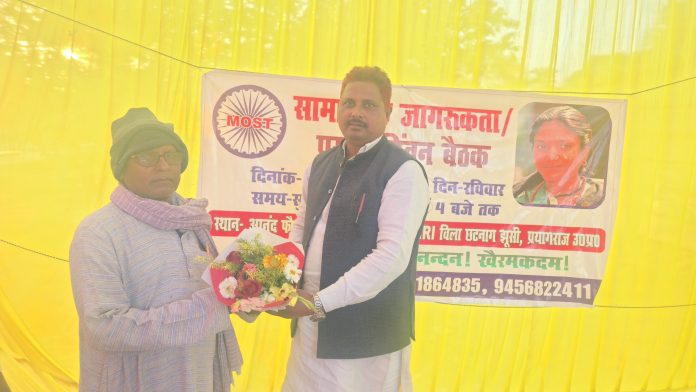 मुडिला / प्रयागराज में दिनांक 08.02.2026 को मोस्ट कल्याण संस्थान के तत्वाधान में सामाजिक जागरूकता/सामाजिक प्रगति चिंतन कार्यक्रम का आयोजन मोस्ट डायरेक्टर शिक्षक श्यामलाल निषाद “गुरूजी” के नेतृत्व में आनंद फौजी स्पोर्ट्स एकेडमी निकट एचआरआई विला छटनाग झूसी में किया गया। कार्यक्रम प्रदेश संयोजक रामानंद बौद्ध की अध्यक्षता व सामाजिक चिंतक बी.एल. साहनी के संरक्षण में सम्पन्न हुआ।