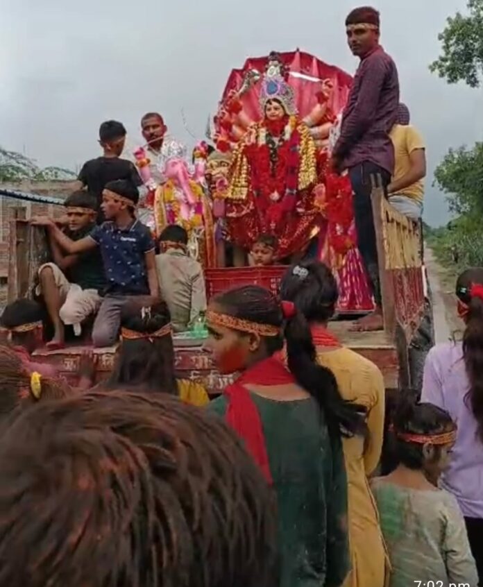 मुड़िला/कादीपुर थाना अंतर्गत ग्राम सभा मलिकपुर नोनरा झगरिया में बाल दुर्गा पूजा समिति ने नवरात्रि में मां दुर्गा की मूर्ति स्थापित की गई थी। जिसके संयोजक संजय यादव, अध्यक्ष मोनू यादव, कोषाध्यक्ष आयुष यादव, पीयूष यादव , मूर्तिकार अरविंद विश्वकर्मा है। मां दुर्गा की मूर्ति का विसर्जन आज सूरापुर मझगवां नहर पर पूरे पुलिस प्रशासन के सहयोग से किया गया। इस पंडाल का पूरा पूजा पाठ पुरोहित लल्लन पाण्डेय द्वारा किया गया। इस पंडाल पर सहयोगी के रूप में वीरेन्द्र यादव, संतोष यादव, विनोद पाल, प्रवेश धुरिया , बचई यादव आदि सभी ग्रामीण रहें