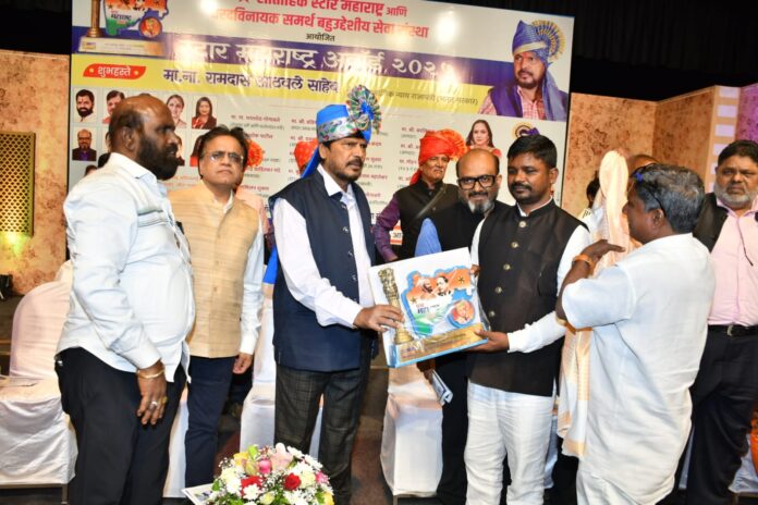 महाराष्ट्र/ मुंबई के आदिवासी पारधी महासंघ के प्रदेश अध्यक्ष संतोष एकनाथ पवार को केंद्रीय मंत्री रामदास आठवले के द्वारा स्टार महाराष्ट्र राज्यस्तरीय पुरस्कार देकर सम्मानित किया गया। संतोष एकनाथ पवार ने आपने आदिवासी समाज के लिए बहुत बड़ी लड़ाई लड़ रहे है। भारत में आदिवासी समाज की स्थिति शुरू से ही दयनीय है। आज भी कई परिवार के रहने खाने की उचित व्यवस्था नहीं हो पा रही है। और संतोष एकनाथ पवार ने संकल्प लिया है कि मैं अपने समाज को रहने खाने के साथ साथ रोजगार की व्यवस्था करवाऊंगा। बड़ी संख्या में आदिवासी लोगों के अलावा अनेक राजनीतिक सामाजिक क्षेत्र के गणमान्य लोग बधाई दे रहे हैं।