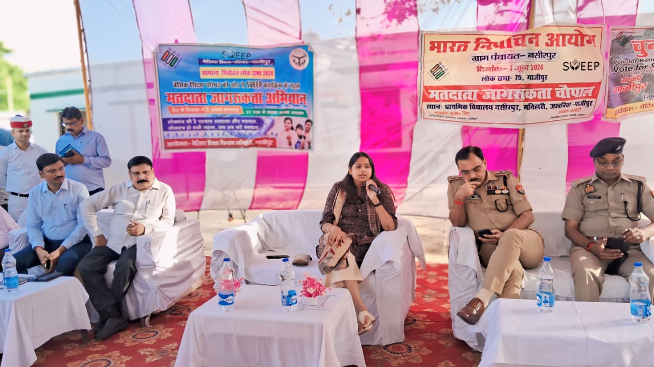 गाजीपुर। लोक सभा सामान्य निर्वाचन 2024 को सकुशल सम्पन्न कराने के उद्देश्य से जिलाधिकारी/जिला निर्वाचन अधिकारी आर्यका अखैरी एवं पुलिस अधीक्षक ओमवीर सिंह ने जखनियॉ क्षेत्र के कंपोजिट विद्यालय ग्राम – नसीरपुर, पो.- हंसराजपुर,  ब्लॉक – मनिहरी, जिला – गाजीपुर मे मतदाता जागरूकता जन-चौपाल के माध्यम से लोगो को निर्भिक होकर वोट डालने के लिए जागरूक किया। जन- चौपाल के दौरान जिलाधिकारी ने उपस्थित लोगो को मतदान के लिए प्रेरित करते हुए कहा कि वोट देना जनतांत्रिक अधिकार है, आप लोग निर्भिक होकर अधिक से अधिक संख्या में अपना वोट डालें। उउन्होंने उपस्थित लोगो से कहां, कि अपना मत किसी के बहकावे, डराने, धमकाने या किसी भी प्रलोभन, मे आकर न दें। यदि कोई व्यक्ति पैसा, शाराब, साड़ी व अन्य प्रलोभन देते समय पकड़ा जाता है, तो देने एवं लेने वाले के विरूद्ध कानूनी कार्यवाही की जायेगी। यदि कोई व्यक्ति जाति व धर्म के खिलाफ लोगो के मन मे भय एवं दंगे के उद्देश्य से निर्वाचन मे कोई विघ्न डालता है या पैसा, शाराब, साड़ी देता है, तो इसकी जानकारी टोल फ्री नं0 1950 या टेलिफोन नं0 0548 220211 पर काल करके जानकारी दे सकतेे है। उन्होंन लोगो से सी-विजिल एप्प डाउनलोड करने की अपील कि भारत निर्वाचन आयोग के द्वारा बनाये गये सी-विजिल एप्प के माध्यम से चुनाव सम्बन्धी किसी प्रकार की शिकायत जैसे कोई गलत पैसा शाराब, साड़ी या जाति धर्म से लड़ाता है तो फोटो एवं विडियो के माध्यम से इस एप्प के द्वारा शिकायत कर सकते है। उन्होने कहा कि, आप अपना मत, डर, भय, लालच में आकर न डालें। जिलाधिकारी ने बताया कि, दिव्यांग व्यक्ति जिनके पास दिव्यांग प्रमाण पत्र है, एवं 85 वर्ष से अधिक उम्र वाले व्यक्तियों का वोट उनके घर पर ही वैलेट पेपर के माध्यम से डाला जायेगा। जिला निर्वाचन अधिकारी ने जन चौपाल के माध्यम से व्यक्तियों को जानकारी दी की कोई भी व्यक्ति का 18 वर्ष या उपर का है, व उसका मतदाता सूची में नाम छूट गया है, तो वह 04 मई, 2024 तक फॉर्म 06 भरकर बी0एल0ओ को जमा कर सकते है। दिव्यांग एवं वृद्ध जिनकी उम्र 85 से ऊपर है तथा बूथ तक जाने में अक्षम है वो फार्म 12 डी0 भरकर सम्बन्धित बी0एल0ओ को 12 मई, 2024 तक जमा कर देगे।  जन चौपाल में उपस्थित ग्रामवासियो को मतदान के प्रति शपथ दिलायी गयी। इस अवसर उपजिलाधिकारी जखनिया, तहसीलदार, एसपी सिटी, व अन्य अधिकारी एवं कर्मचारी मौजूद रहे।