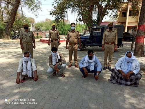 आजमगढ़ निजामाबाद थाना क्षेत्र के फरिहा गांव के चार वांछित अभियुक्त जो गौतस्करी तथा गोवध के मुकदमे में काफी लम्बे समय से फरार चल रहे थे। निजामाबाद थाना प्रभारी दिनेश कुमार सिंह ने बताया कि लगातार आरोपियों के यहां दबिश देने के बाद आरोपी फरार हो जाते थे जिससे सफलता नहीं मिल पा रही थी मुखबिर के जरिए सूचना मिलने पर प्रभारी निरीक्षक निजामाबाद दिनेश कुमार सिंह मैं फोर्स आज 13 अप्रैल को भोर में ही दबिश देकर चारो आरोपियों को गिरफ्तार कर जेल भेज दिया गिरफ्तार किये गये अभियुक्तों में