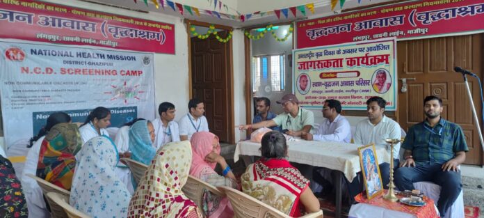 गाजीपुर। वृद्धजन आवास छावनी लाइन गाजीपुर में अंतर्राष्ट्रीय वृद्धजन दिवस के अवसर पर एक स्वास्थ्य परीक्षण कार्यक्रम आयोजित किया गया। यह कार्यक्रम डॉ. मिथिलेश यादव के नेतृत्व में किया गया। इस स्वास्थ्य परीक्षण कार्यक्रम में वृद्धजनों के स्वास्थ्य की जांच की गई, जिसमें उनके शारीरिक और मानसिक स्वास्थ्य का मूल्यांकन भी किया गया। कार्यक्रम में बधिरता की समस्या के बारे में जागरूकता फैलाई गई और इसके बचाव के तरीकों के बारे में जानकारी दी गई। वृद्धजनों के मानसिक स्वास्थ्य पर विशेष ध्यान दिया गया और उन्हें मानसिक स्वास्थ्य के महत्व के बारे में जागरूक किया गया। इसके साथ ही वृद्धजनों के लिए सरकारी योजनाए जैसे स्वास्थ्य सेवा के अंतर्गत वृद्धजनों के लिए विशेष स्वास्थ्य सेवाएं प्रदान की जा रही हैं, जिसमें उनके स्वास्थ्य का परीक्षण और उपचार किया जाता है। सामाजिक सुरक्षा पेंशन इसके अंतर्गत वृद्धजनों को सामाजिक सुरक्षा पेंशन के माध्यम से आर्थिक सहायता प्रदान की जा रही है।अंतर्राष्ट्रीय वृद्धजन दिवस के अवसर पर आयोजित इस कार्यक्रम का उद्देश्य वृद्धजनों के स्वास्थ्य और कल्याण को बढ़ावा देना है। इस तरह के कार्यक्रम वृद्धजनों को समाज में सक्रिय और स्वस्थ जीवन जीने के लिए प्रेरित करते हैं।