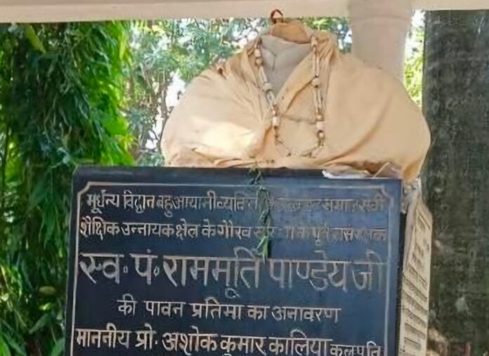 गाजीपुर। सादात थाना क्षेत्र के हुरमुजपुर मे स्थित सर्वोदय इंटर कॉलेज परिसर में लगी प्रतिमा को शनिवार की रात अराजक तत्वों ने तोड़ दिया। यह प्रतिमा विद्यालय संस्थापक मंडल के सक्रिय सदस्य रहे स्वर्गीय राममूर्ति पांडेय की है, जिसको 25 जुलाई 2007 को परिसर में लगाई गई थी। प्राप्त जानकारी के अनुसार, अज्ञात अराजक तत्व रात मे विद्यालय की दीवार फांदकर अंदर घुसे और उन्होंने प्रतिमा को गर्दन से शर को अलग कर नुकसान पहुंचाया। घटना की सूचना मिलते ही विद्यालय प्रबंधन ने तत्काल पुलिस को जानकारी दी। सूचना पाकर मौके पर पहुंची पुलिस ने घटनास्थल का निरीक्षण किया। पुलिस ने दोषियों के खिलाफ जल्द ही सख्त कार्रवाई का आश्वासन दिया है। घटना को लेकर विद्यालय परिवार और स्थानीय लोगों में गहरी नाराजगी है। स्थानीय नागरिकों ने प्रशासन से मांग की है, कि आरोपियों की पहचान कर उन्हें कड़ी सजा दी जाए। इस अवसर पर प्रबंधक विपिन कुमार उर्फ राजन पांडेय, हवलदार सिंह, राजेश कुमार पांडेय, सूर्यभान सिंह, फौजदार यादव, रामधनी शर्मा, कामेश्वर पांडेय, मिश्री पांडेय, संतोष सिंह मुन्ना, नागेंद्र सिंह, हरिगोबिंद सिंह वकील, ग्राम प्रधान प्रतिनिधि गुड्डू गोंड सहित कई स्थानीय लोग मौजूद रहे। सादात थाना एस.ओ. वागीश विक्रम सिंह ने बताया, कि प्रबंधक की तहरीर पर अज्ञात लोगों के खिलाफ मामला पंजीकृत कर आगे की कार्रवाई की जा रही है।
