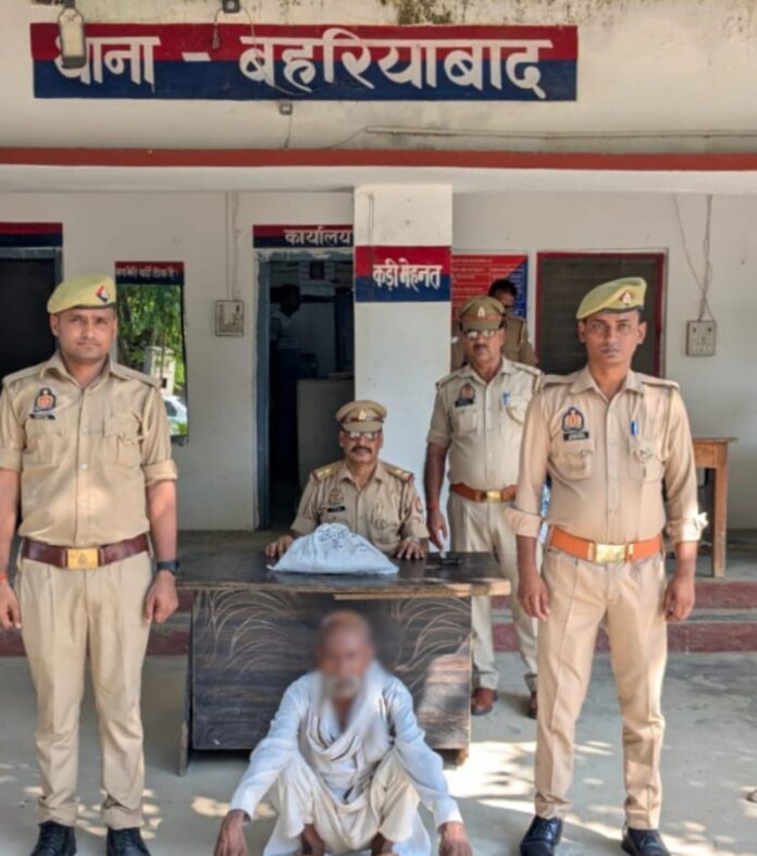 गाजीपुर। थाना बहरियाबाद पुलिस टीम ने 01 किलो 400 ग्राम नाजायज गाँजा के साथ एक अभियुक्त को किया गिरफ्तार। जनपद मे अपराध एंव अपराधियों के विरुद्ध चलाये जा रहे अभियान के तहत 29 सितंबर 2025 को थानाध्यक्ष कृष्ण प्रताप सिंह व उ0नि0 अशोक कुमार शुक्ल मय हमराह थाना बहरियाबाद, जनपद गाजीपुर, क्षेत्र मे चेकिंग के दौरान मुखबिर की सूचना पर मिर्जापुर प्यारेपुर मार्ग पर नहर पुलिया से अभियुक्त सदन राम पुत्र स्व0 विश्राम निवासी ग्राम मिर्जापुर, थाना बहरियाबाद, जनपद गाजीपुर, उम्र करीब 60 वर्ष को गिरफ्तार किया गया। पकड़े गए अभियुक्त के कब्जे से 01 किलो 400 ग्राम नाजायज गाँजा बरामद हुआ। जिसके सम्बन्ध में अभियुक्त के विरूद्ध थाना स्थानीय पर मु0अ0सं0-166/2025 धारा-8/20 एनडीपीएस एक्ट का अभियोग पंजीकृत कर अग्रिम विधिक कार्यवाही की जा रही है ।
