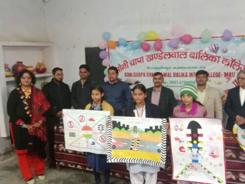 जनपद मऊ सोनीधापा खंडेलवाल बालिका इंटर कॉलेज मऊ में शनिवार को सड़क सुरक्षा जागरूकता विषय पर जिला स्तरीय पोस्टर प्रतियोगिता, क्विज प्रतियोगिता एवं भाषण प्रतियोगिता का आयोजन जनपद नोडल अधिकारी ऋचा त्रिपाठी के नेतृत्व में किया गया।